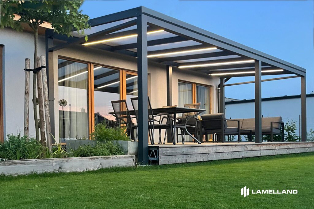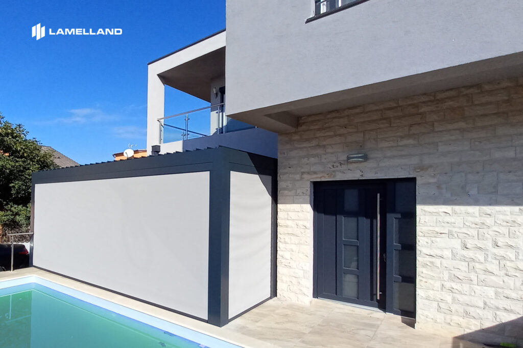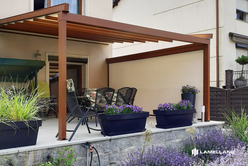 Pergola vytvára príjemný tieň počas horúcich dní a v kombinácii s doplnkami, ako sú bočné screeny, zasklenie alebo lamelové steny, umožňuje lepšiu ochranu priestoru pred nepriaznivým počasím. - Rozšírenie obytného priestoru